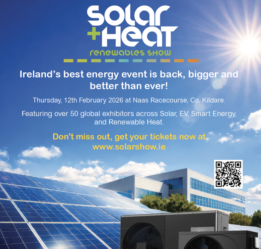 Taking place on Thursday, 12th February 2026 at the iconic Naas Racecourse, the Solar & Heat Renewables Show returns bigger, stronger and more relevant than ever. Formerly known as the Solar & EV Show, last February’s event was widely regarded as one of the standout industry gatherings of the year. For 2026, the show has evolved, reflecting the changing landscape of renewables in Ireland, with the inclusion of Renewable Heat and a refreshed brand to match. Attendance is free, the offerings priceless.